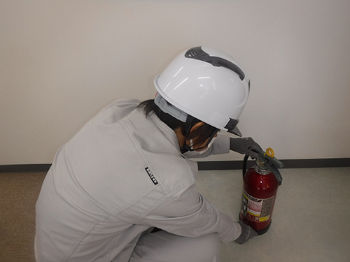 非常ベル鳴動・各種消防設備機器の取扱説明・訓練用消火器による消火訓練等